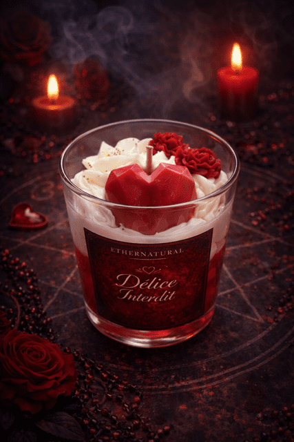 Bougie Délice Interdit 150 g, à la fragrance profonde, envoûtante et sensuelle. Son parfum gourmand et captivant diffuse une ambiance chaleureuse et mystérieuse, idéale pour sublimer vos moments de détente et de plaisir.