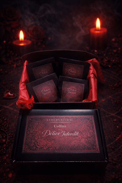 Coffret de fondants parfumés Délice Interdit composé de 4 fondants aux notes sensuelles et enivrantes. Une fragrance profonde, gourmande et captivante, idéale pour créer une ambiance chaleureuse, mystérieuse et irrésistible.